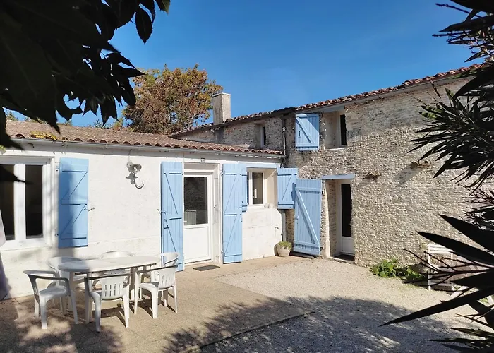 Villan La Grange Bleue - Parking Prive - A 2Km De La Mer Saint-Georges-d'Oleron med 1 sovrum, som ligger bara 250 meter från Boyardville, har en terrass med utsikt över trädgården.